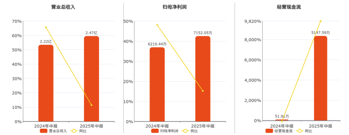 公司营业总收入为2.47亿元。归母净利润为7152.05万元。经营活动现金净流入为5147.59万元。
